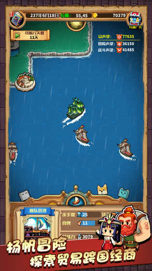 小小航海士安卓版一款大航海背景下的策略冒险类游戏,玩家作为一个船长将带领自己的舰队和船员探索广阔无边的海域,发展自己的贸易,也可能碰到各种意想不到的突发情况,总之,能否顺利航行就看你的领导力了。