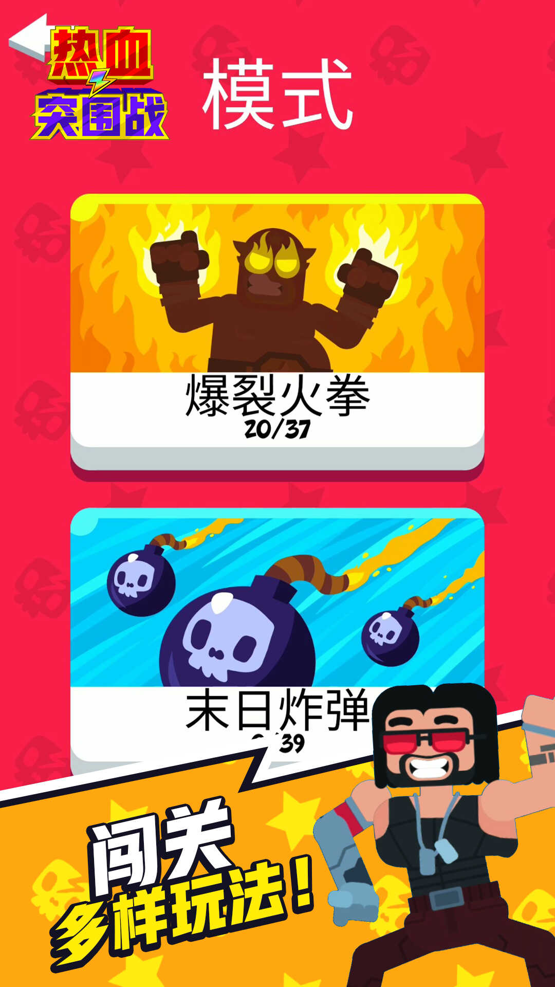 热血突围战游戏是一款多人竞技类型休闲游戏,我们的主人公依旧是非常可爱的鲍勃,也是这个星球最为强壮的男人,而武器就是这个身体,利用自己的身体来攻击其他的敌人,最终完成消灭任务,你能够完成吗,困难度还是挺高的。