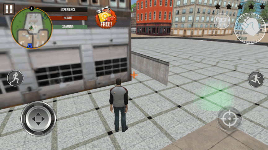 3.操作界面和刺激战场非常相似,你可以自由做任务或者是无脑在街头到处开枪,反正等到警察的星级积攒到五星就会有飞机来制裁你,自己看着办吧。