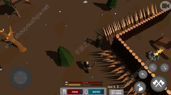 3、为你的生存基地建立强大的防御吧,陷阱、倒刺木桩等等可以抵御僵尸的入侵哦,每段时间都会有强大的尸潮来攻击你的家园哦,你可以建立强大防御或者升级院墙来保护自己的家园!