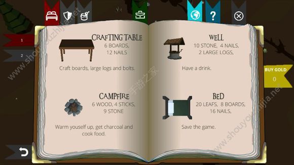 2、游戏中玩家可以利用生存手册解锁各种生存技能,制作斧子、镐子、矛等等基础工具开启生存之路!