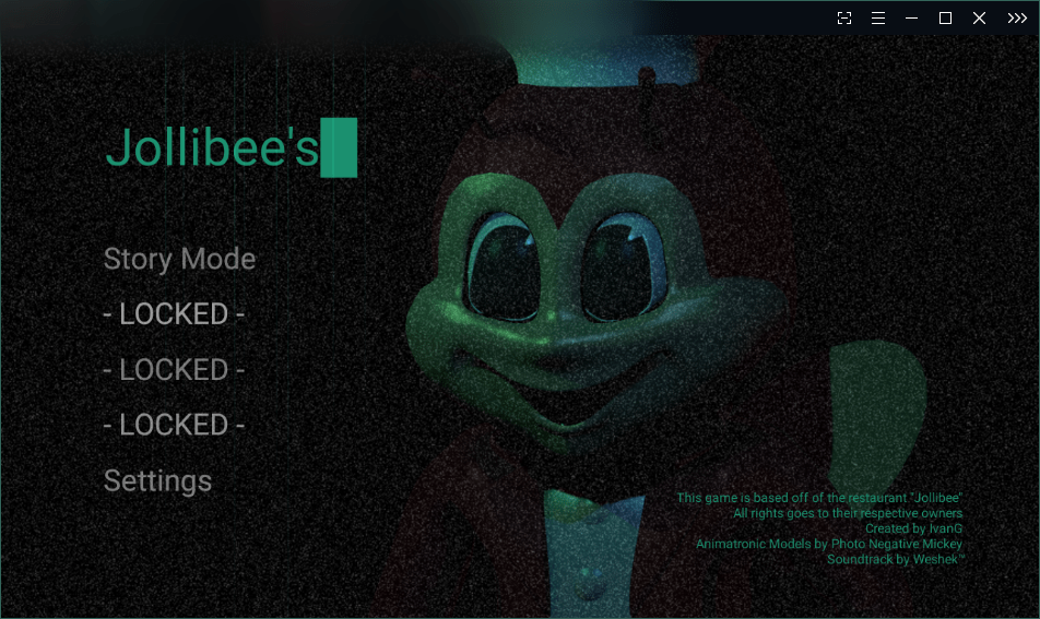 jollibees恐怖游戏安卓手机版:就图片来看应该是挺好玩的,但具体到底是什么样只有等下载之后才知道了。目前在网上搜不到任何相关的信息和资料,估计攻略也是很稀少的,我们只有自己慢慢的研究才能通关了,还是需要一定的头脑和策略的,如果只是莽夫式的瞎闯没有意义。