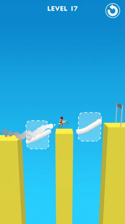 1.玩家需要帮助摩托车手铺设前方的道路,让他可以顺利的通过各种障碍从而顺利的到达终点。
