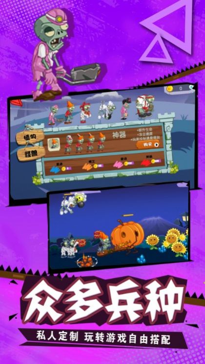 2、无数关卡,合理搭配你的战斗阵容取胜,多种皮肤供你选择,升级植物属性。