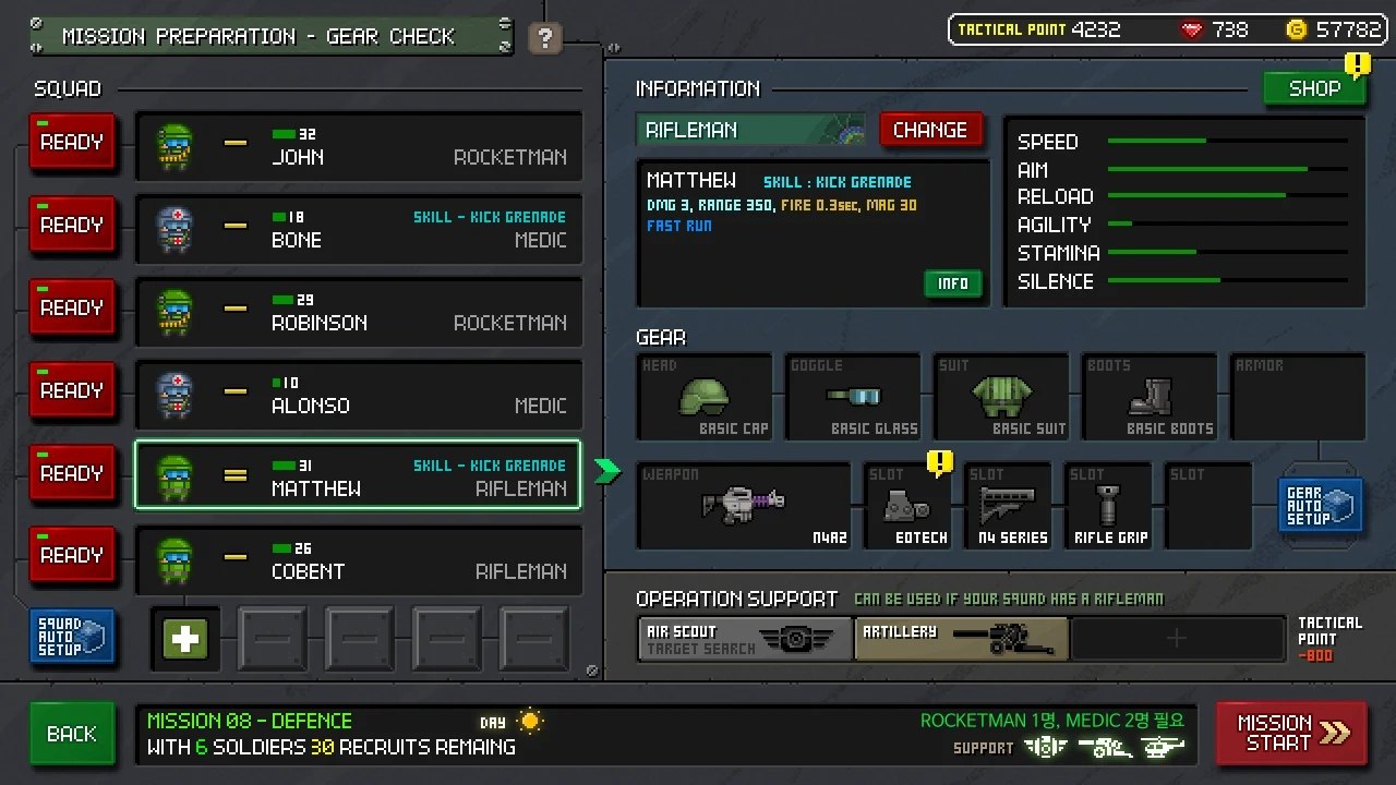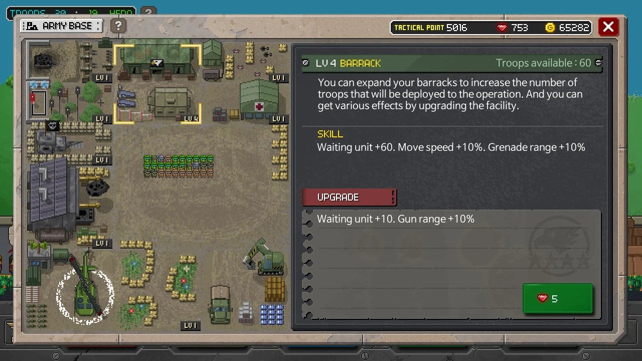 3、为每个类别使用各种武器,武器修改和设备,升级您的基础设施并提高士兵的能力。