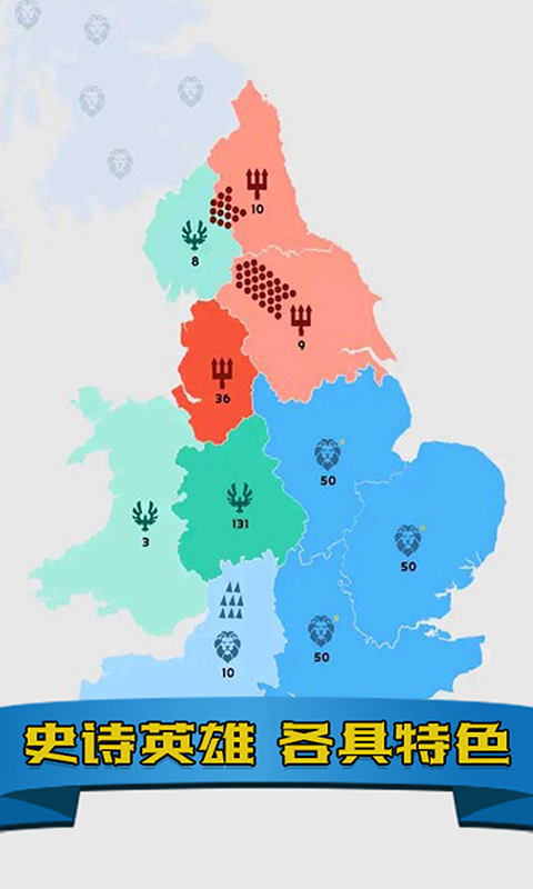 玩家通过合理的派遣兵力,进行领地守护及攻占,最终击败敌人占领全图,取得胜利。