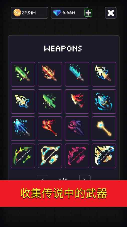 2.丰富的武器使用,操作经验面对怪物,勇敢的像素地下城来挑战;