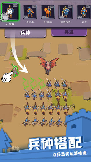 2:多种职业英雄与兵种自由组合搭配,不断秀出新操作,带领军团走向最终胜利!一场超自由的指尖划线对决等待着你的到来!