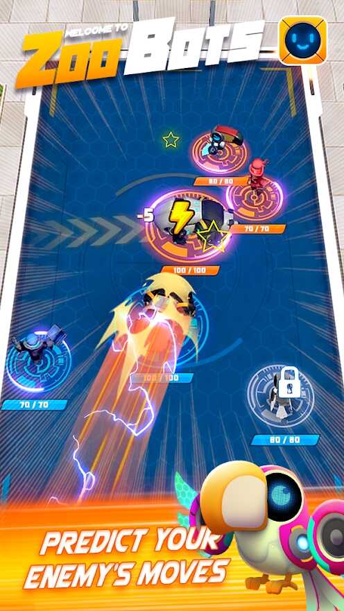 ZooBots游戏是一款手指感应操控机器人对战类竞技游戏,我们将和来自世界各地的玩家们共同来一场激烈1V1的实时战斗比赛吧,在经典的回合制创新的游戏当中加入了新颖的玩法功能,在战斗的时候要预判敌人的走位,这样才能够百战百胜呢。