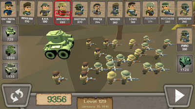 卡通q萌的人物和场景设置,玩家可以选择排兵布阵来打赢对方的士兵。 金额有限,怎样才能获得三星的胜利就很考验玩家的策略了。