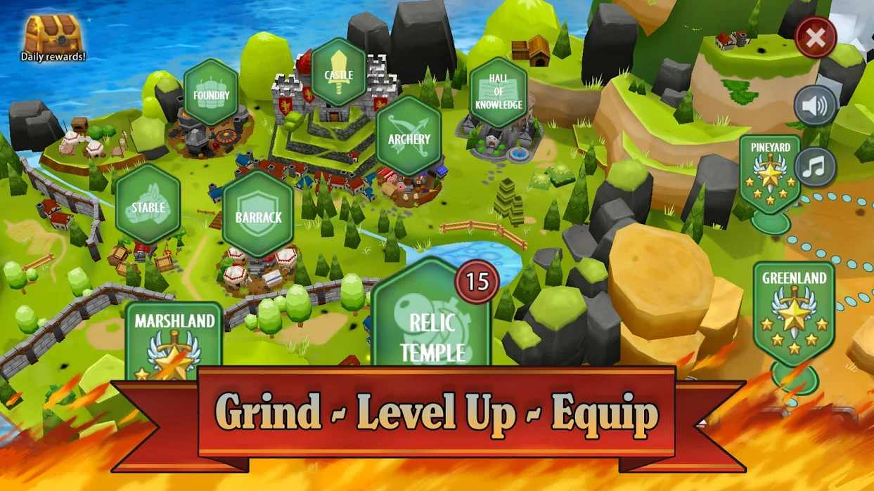 1.继续收集金币开始你的冒险,解锁招募更多的英雄搭配强大的阵容上阵战斗吧。