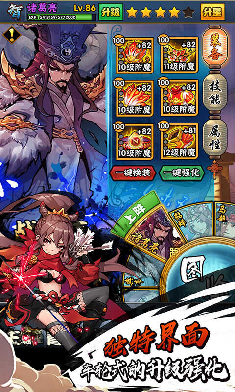 游戏中采用了q版的卡通画面风格,以及简约的操作界面给玩家带来了很好的视觉体验。游戏的内容丰富度很高,游戏中玩家可以按照自己的打法风格组配自己的阵容。对三国题材和卡牌游戏,感兴趣的玩家可以尝试一下这款游戏。