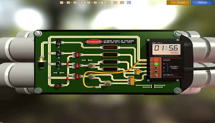 拆弹学院游戏安卓最新版是一款集合了策略、模拟、解谜为一体的休闲类小游戏,在Bomb Squad Academy游戏中玩家将要扮演一名拆弹学院中的学生,如果你想在学校毕业,那么你肯定要完成学校给你布置的考试,那么这次Bomb Squad Academy里你将要拆除一枚枚考试用的炸弹,如果炸弹爆炸你将不能毕业,你需要良好的心态来进行考试,那么你才能够顺利毕业,并且还有时间的限制,那么你准备好了吗?