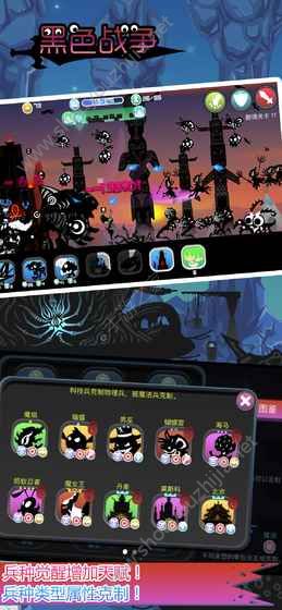 黑色战争(BLACKWAR)安卓手机版是一款新奇独特的剪影风格的游戏,独特的剪影世界,新奇的策略战斗,开始你的黑色战争,召唤你的士兵们共同前去战胜那些恶魔军团,运用你的策略去消灭它们。