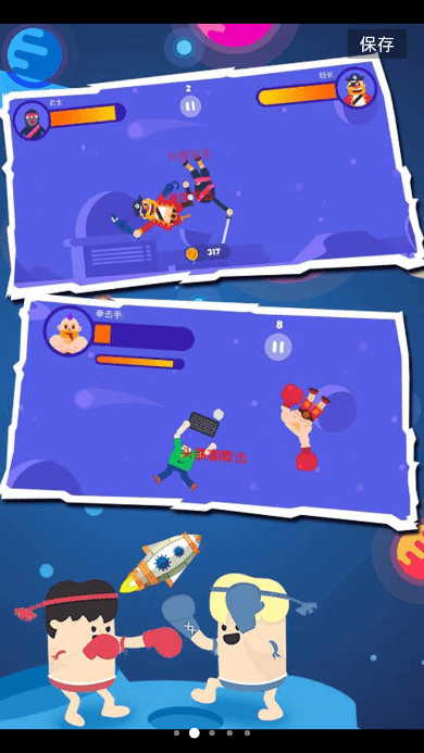 太空乱斗游戏手机安卓版:作为一款可以竞技格斗的手游来说,我们的使命就是不断的和敌人进行各种厮杀,通过自己的努力去打败他们成功晋级。魔性的人物建模和风趣搞笑的动作会让玩家忍俊不禁,而且流畅的战斗体验没有丝毫拖泥带水的感觉,玩起来还是非常的有意思的。