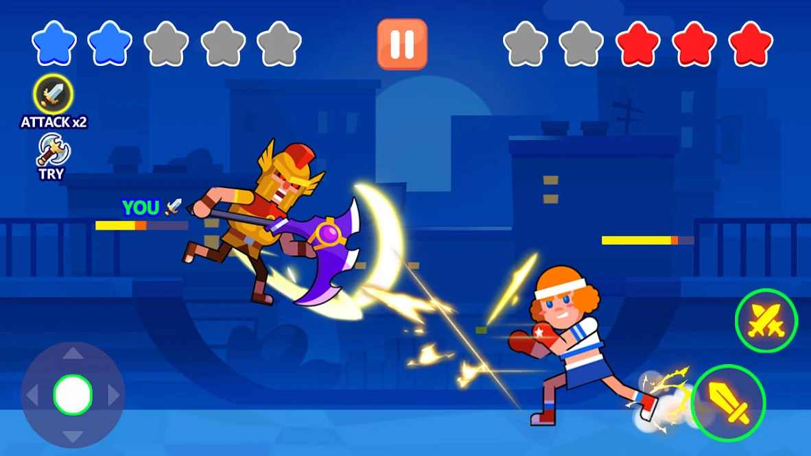 2.在更轻松的决斗中展示你的操作和力量,解决所有的敌人,控制你的战士到最后。
