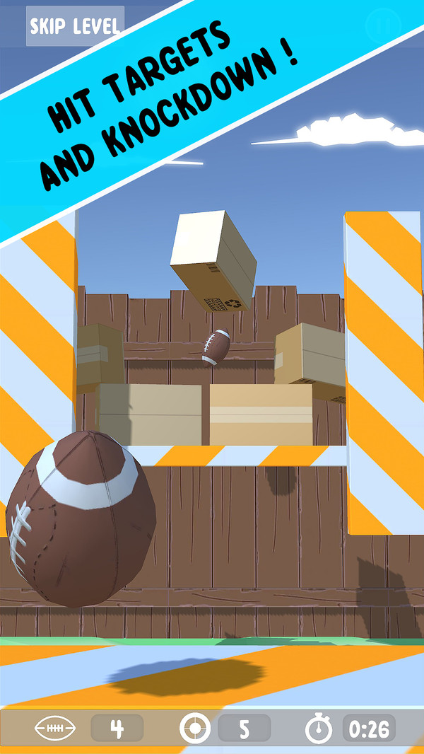 击倒目标游戏安卓版:相同的橄榄球将带您通过不同的挑战,滑动以调整角度,燃烧大脑以计划每个发射位置,并精确地调整位置以击中目标,最后成功击落所有的物体就能够算我们挑战成功,轻松的以指尖挑战,各种级别的不同目标分布测试您的级别。
