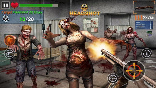 3.各种强大的武器消灭所有丧尸的袭击,左右轻击屏幕可避免感染者的攻击,它还可以发射大量弹药。