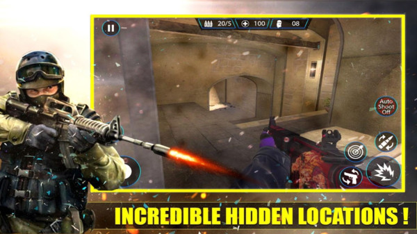 反FPS射击罢工游戏:直接闯过了敌人的全部基地,防御起来得到更多的快感,武器系统全部升级,有着最畅快的射击快感;枪战队伍提高自己的实力,多多参与训练任务吧,各种枪支弹药等你使用,爆头击杀有更多的成就感。