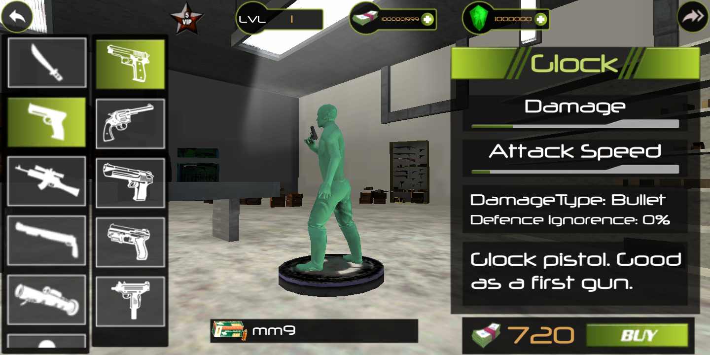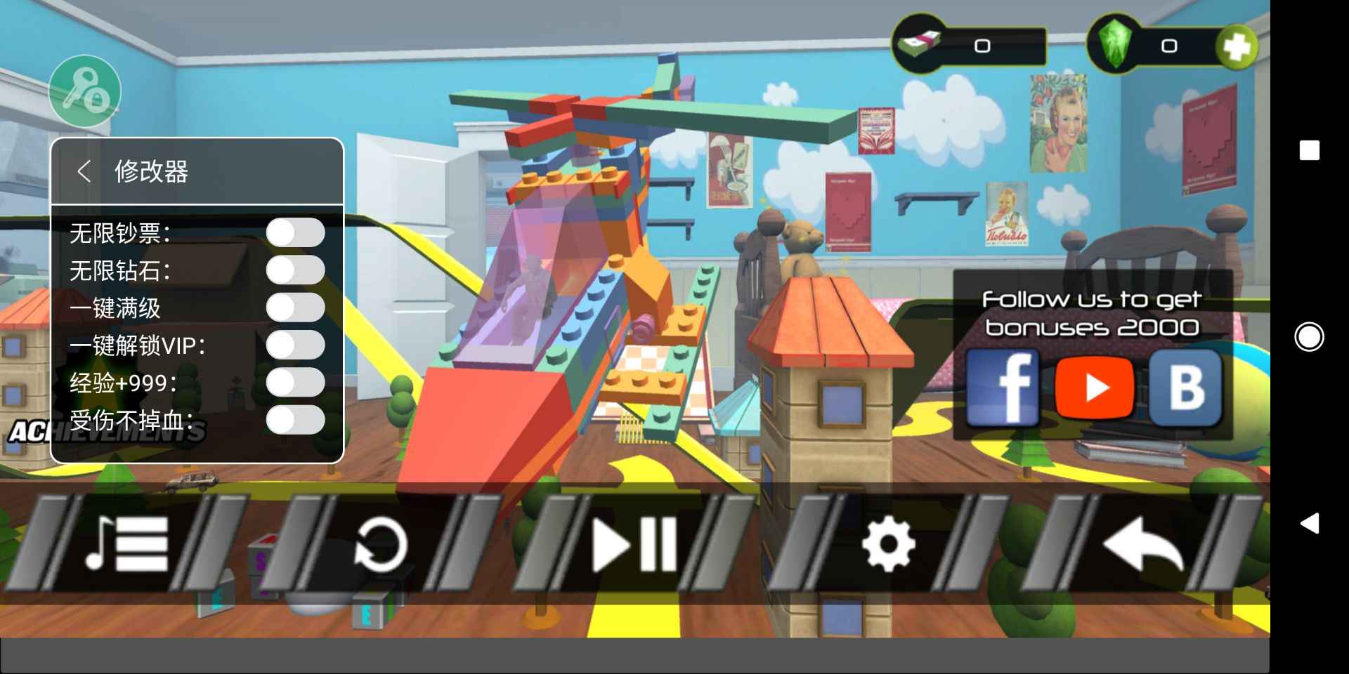 作弊菜单: 无限钞票、、一键满级、一键解锁VIP、经验+999、受伤不掉血。