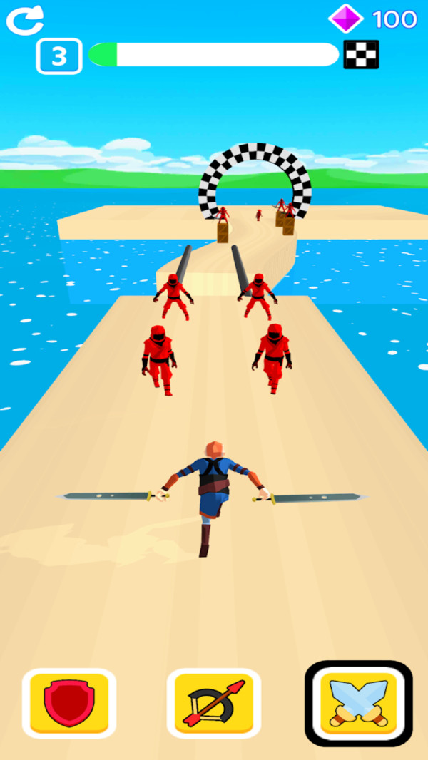 1.通过收集武器在游戏中不断的闯关,打败强大的敌人,各种外观不同的武器供您解锁。