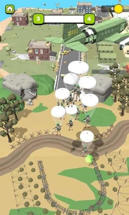机载小队游戏:经典的伞兵空降玩法,熟悉的射击放置挑战,玩家将会和强大的敌人进行战斗,凭借火力的优势来迅速消灭敌人,同时快速升级不同的属性来维持战斗力,只要你可以提升属性,那么军队将会变得越来越强大。
