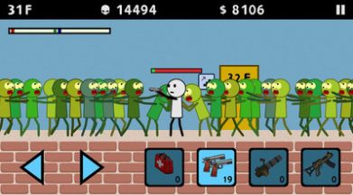 3、一旦你准备好战斗,选择一把枪装备你的火柴人并准备僵尸攻击。