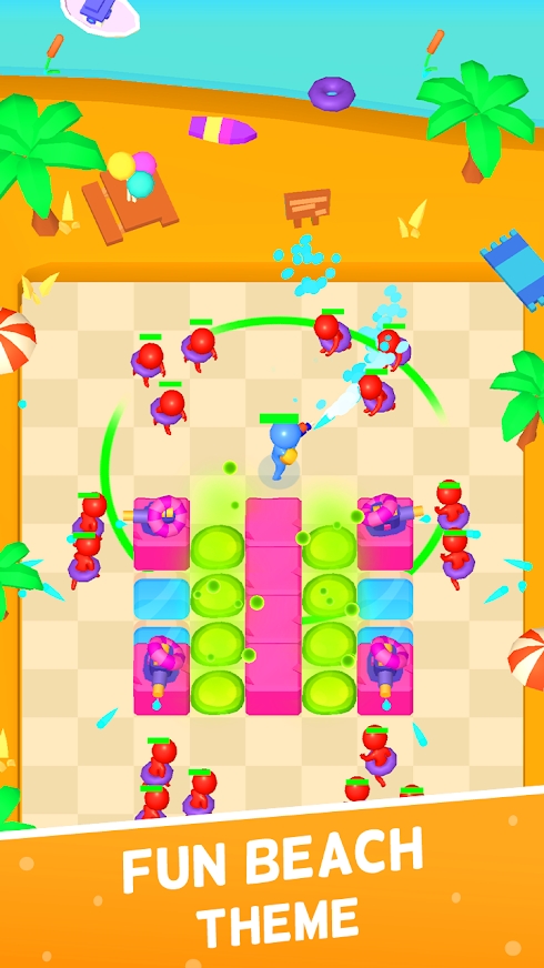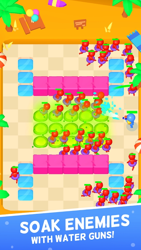 水枪战士游戏氛围十分欢乐,在水上公园中让我们一起来进行射击挑战赛,敌人会从四面八方向你发动进攻,在不离开地面的情况下将他们全部淘汰,用手中的武器来发动攻击,掌握主动权。简洁休闲的游戏玩法和画面,给人的感觉非常轻松,现在就加入到其中,一起来开始闯关吧!