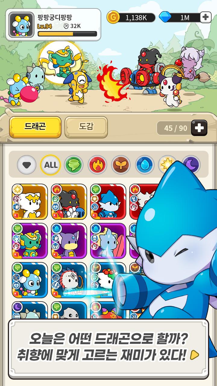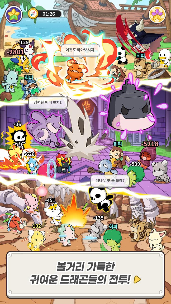 龙村竞技场드빌 아레나是一款卡通休闲放置类游戏,超级可爱的Q版巨龙们,轻松享受你的放置生活,不论是在哪里都可以畅玩,有这么多可爱的巨龙可以培养,带着他们进入副本与其他人对战。