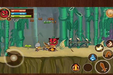 1. 虚拟按键操作,屏幕左下方的箭头可以控制人物的走动方向,屏幕右下方是角色的动作控制区域,包括跳跃、普通攻击和技能,点击一次即可触发。