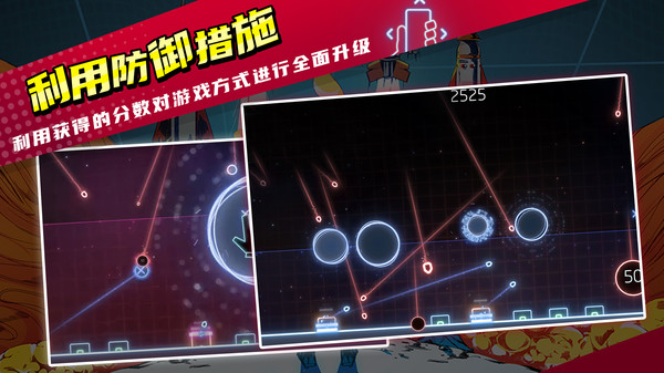 3.您还可以建立防御以轻松应对导弹,储存能量以获得强大的动作,并立即清除屏幕。
