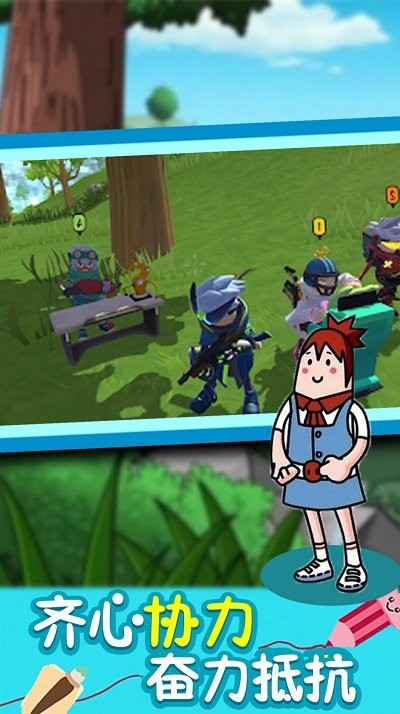 这是一款非常休闲的吃鸡游戏。画面卡通,玩法多样。可以让玩家获得最解压的游戏体验。喜欢的玩家快来下载吧。