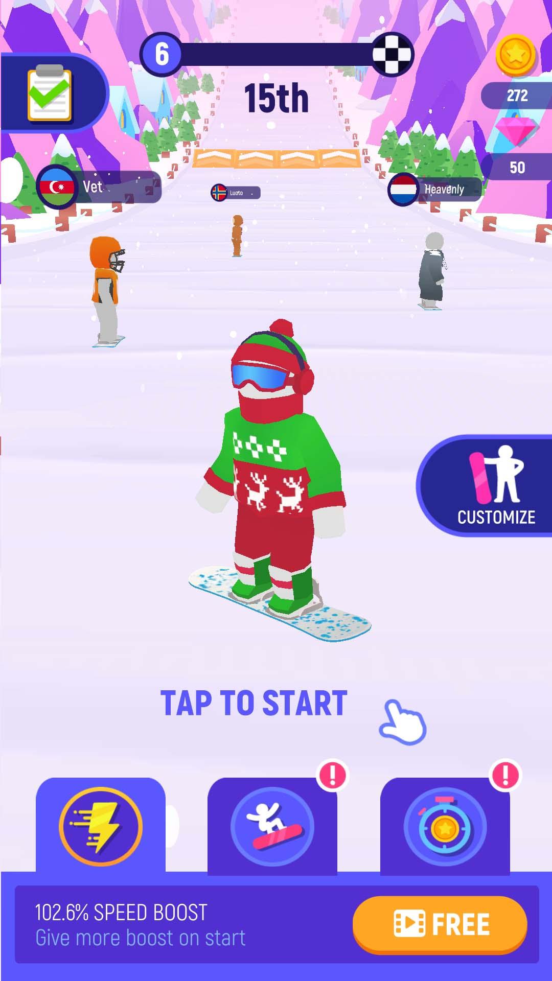 参与滑雪游戏的各个项目,在解锁新的滑雪设备以及装扮。