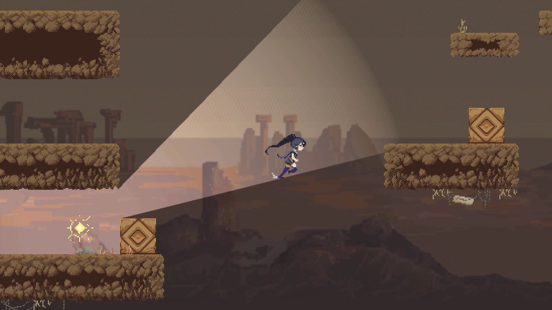 玩家投出的光的不同位置和角度会影响场景中阴影的形状和长度,影子化身可以在这些影子上行走。