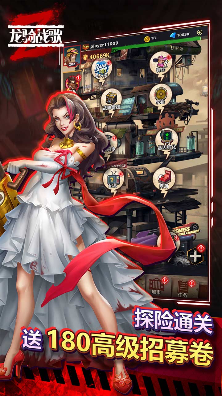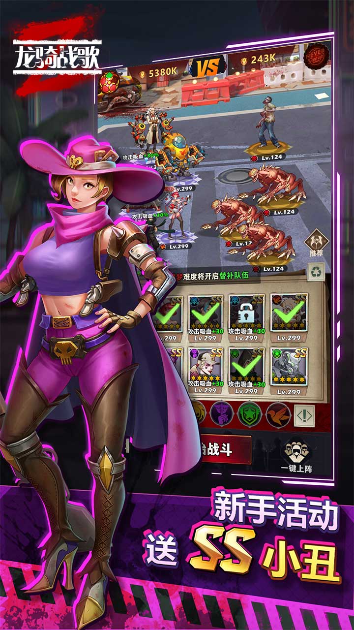 龙骑战歌是一款卡牌策略冒险类游戏,美丽的地球被病毒慢慢侵蚀,丧尸瞬间扰乱世界,国家和城市一个个被毁灭,人类文明危在旦夕,城市探索,医院逃生,堡垒之战,战斗无处不在,是时候保护我们的家园了。