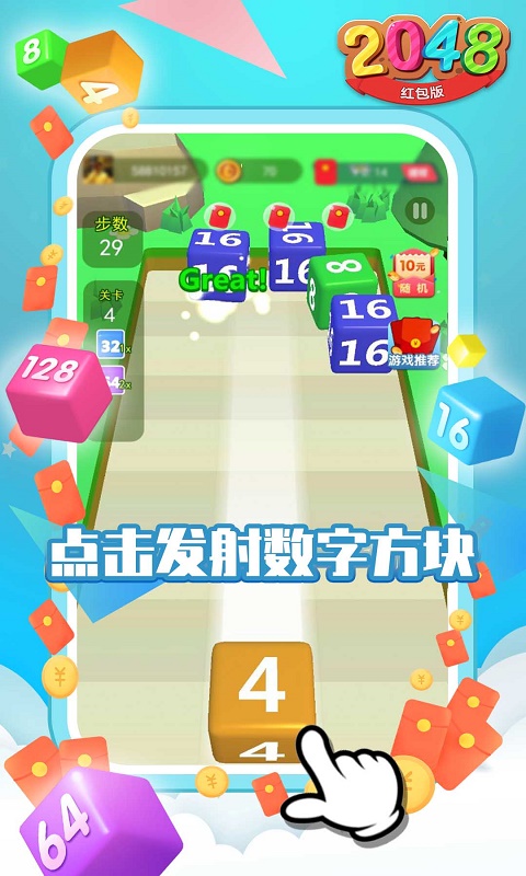 全新红包福利上线,2048游戏界面也换成了火红的红包模式。