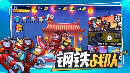 钢铁战队大作战中,场景还是比较丰富的。玩家可以释放各种压力持续参与机甲对战,也可以自由DIY自己的机甲。游戏的金币还是比较丰富的,可以继续参与战斗,使用各种技能,调整自己的策略。您可以随时开始自己的冒险。如果你有喜欢的朋友,快来预约钢铁战队大作战吧!