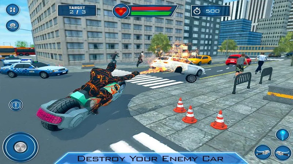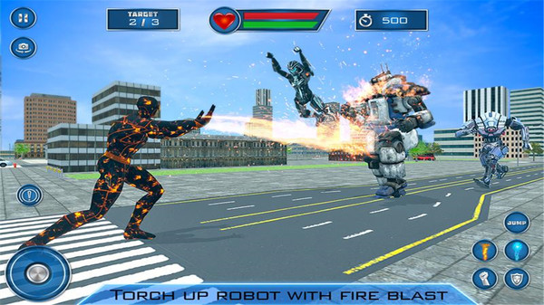 准备超级英雄战斗或与城市的危险战斗,采取行动摧毁邪恶的敌人的阴谋。玩家需要通过火的方式控制英雄,消灭道路上的各种怪物,保护城市的安全。