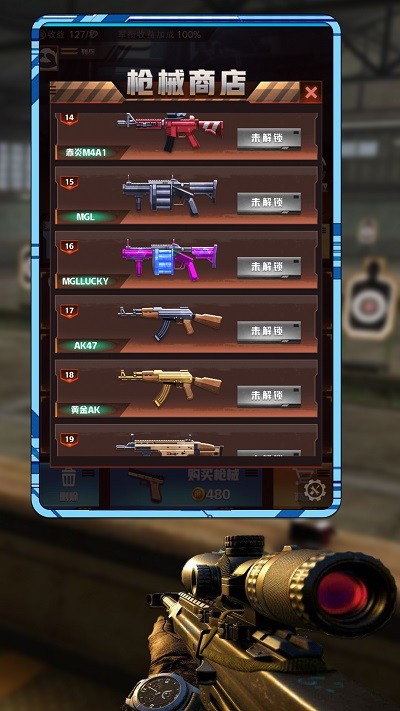 2、你可以用比赛中获得的奖金来购买不同的射击枪,不同的狙击枪有不同的特点。