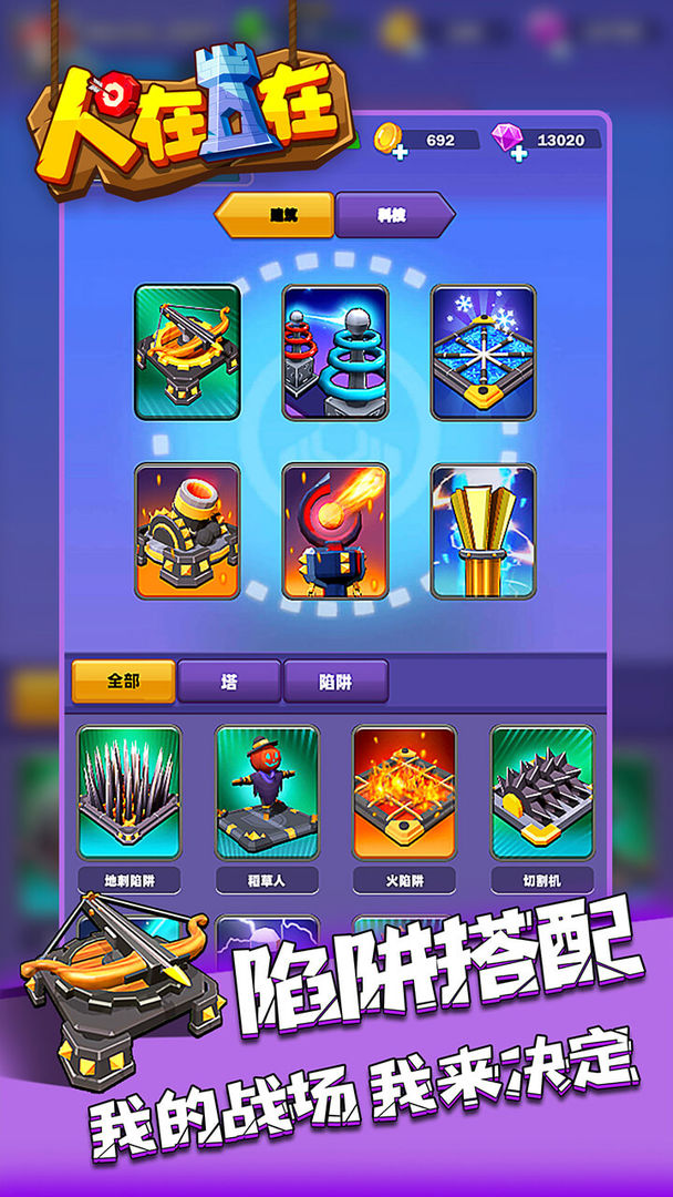 塔防建筑强大,该建筑分为陷阱和塔楼。