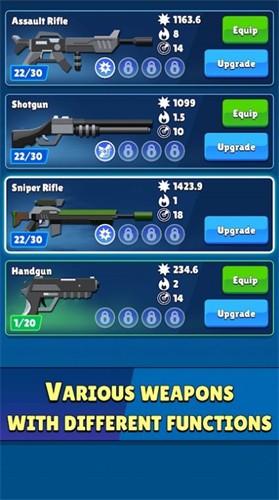 淘气的英雄射手游戏是一款趣味十足的休闲射击游戏,玩家能够控制自己的角色,在游戏中手拿武器对着其他敌人进行射击,获取更多的金币和经验,以此解锁更加强力的武器,帮助你在后面的进攻中有更好的优势,十分紧张刺激,还在等什么,快来下载体验吧!