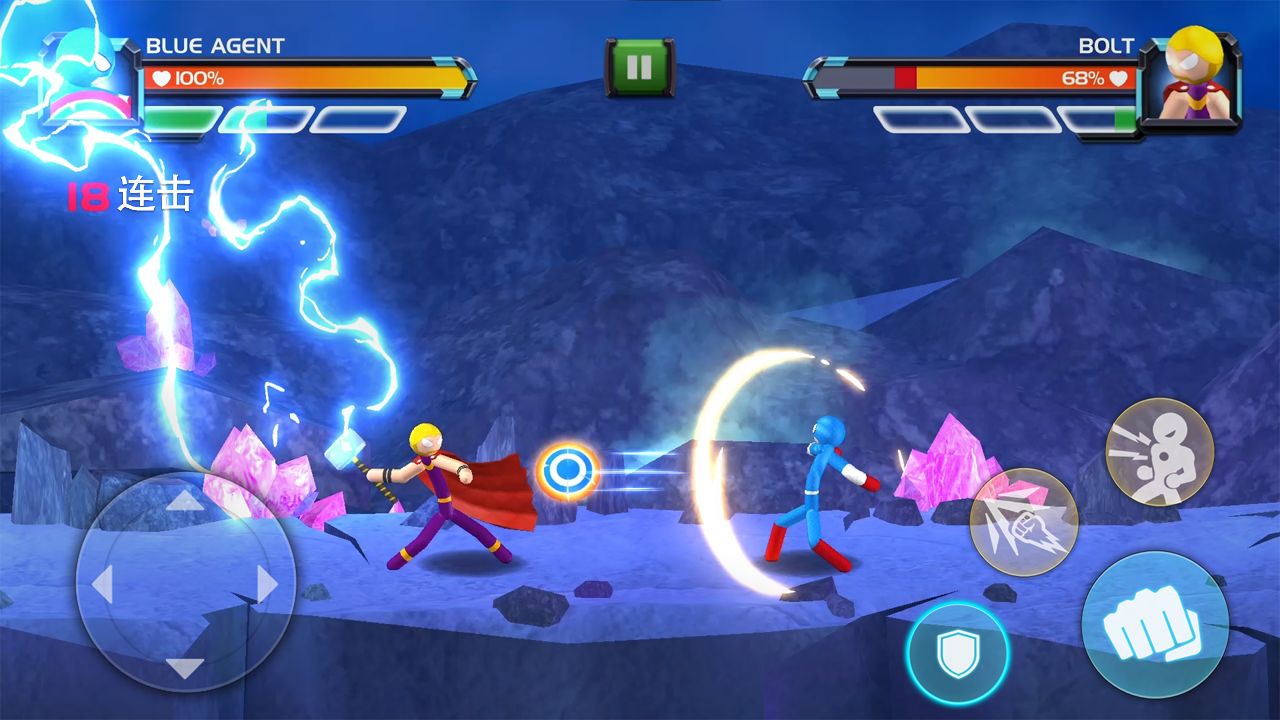 在游戏中,玩家使用火柴人,遇到许多敌人,可以使用组合技能将它们击倒,超级好玩。