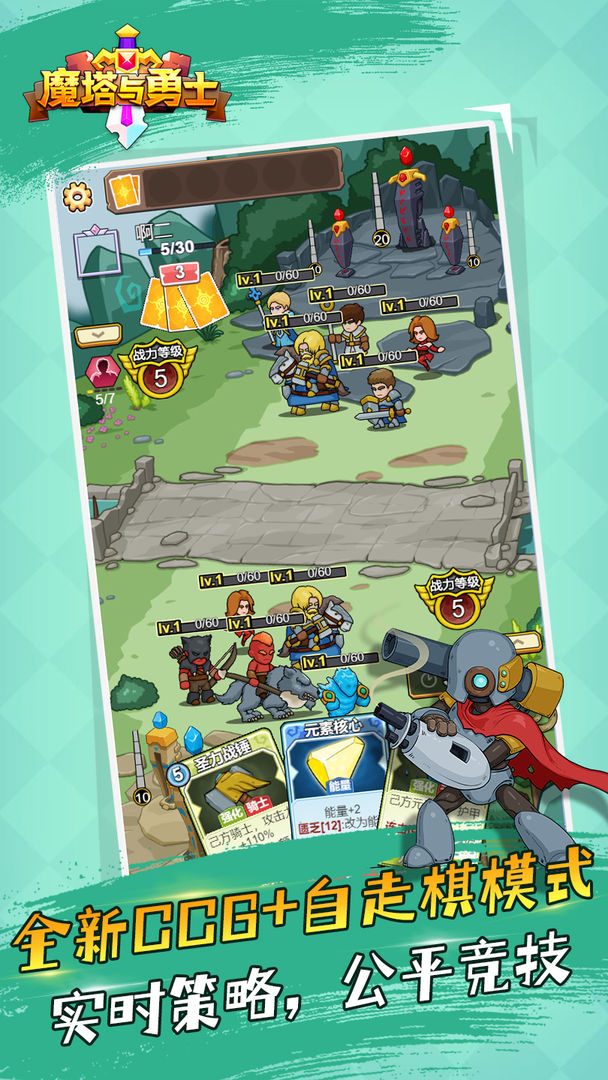 魔塔与勇士是一款卡牌对战自走棋类游戏,游戏拥有十分不错的画面,有过去漫画书里面的画面风格,玩家在游戏中只需要收集五位英雄,就能够自由开始战斗,不肝不氪,快来体验。