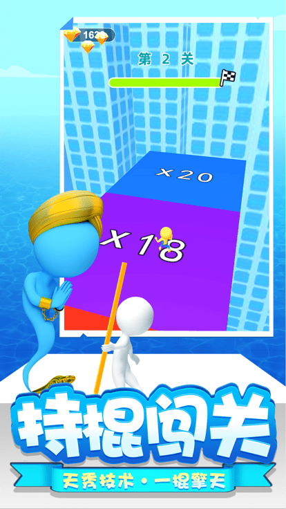 一棍擎天是一款非常休闲的跑酷游戏,内置大量自由选择挑战的关卡,各种皮肤可以挑选使用,玩家需要手持木棍进行闯关,玩法很有意思。喜欢一棍擎天的小伙伴不要错过。