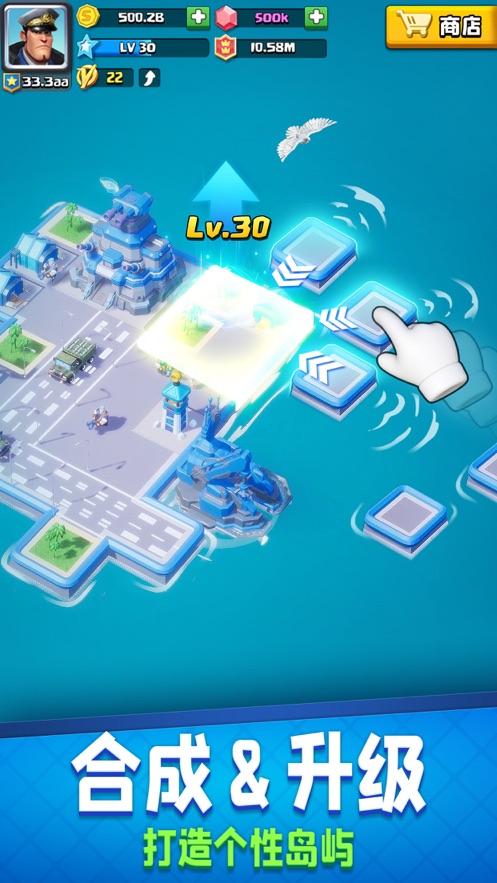 1、不论是建筑还是士兵单位,只要合成就升级!有别以往的升级方式减少大量等待时间,拥有战力瞬间上升的快感!