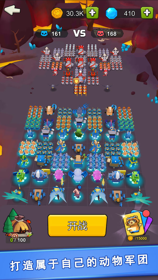 在游戏中你可以收集不同的动物,组建军队,突破不同的挑战。