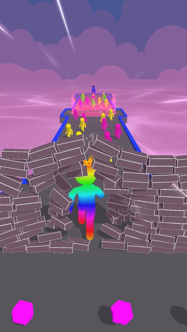 游戏玩法非常简单。在前进的过程中,不断地收集同色反派。