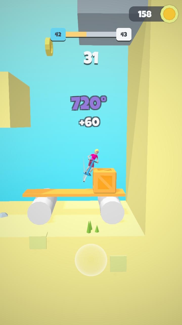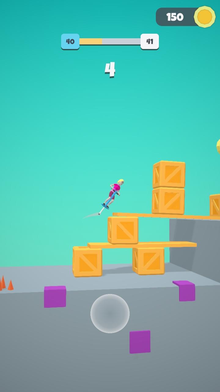 跳跳杆酷跑Pogo Run是一款蹦跳魔性跑酷类游戏,控制人物使用跳跳杆掌握好力度跳跃到平台上,躲避凸起的障碍物,克服路途上的一切困难顺利来到终点进入下一关。