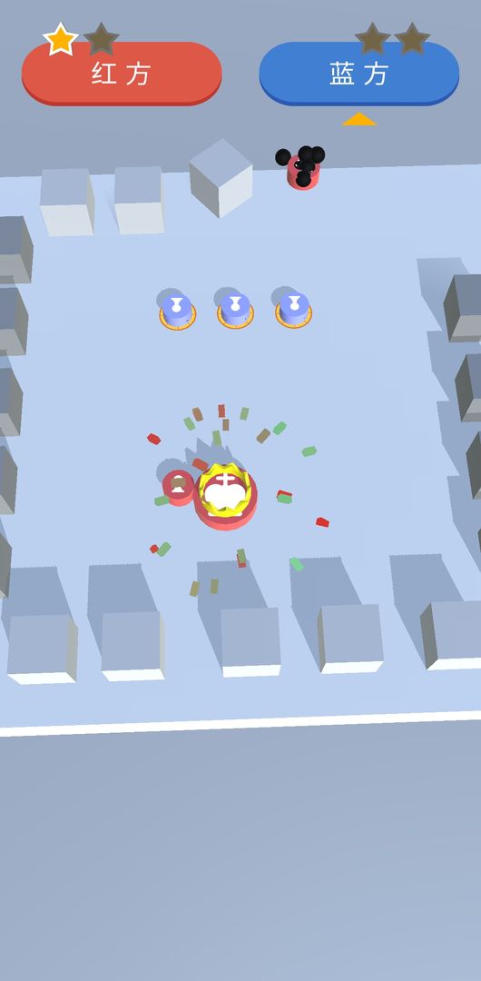 玩家需要控制他们的棋子以摧毁方格并将对手的棋子从场上弹出来获胜。