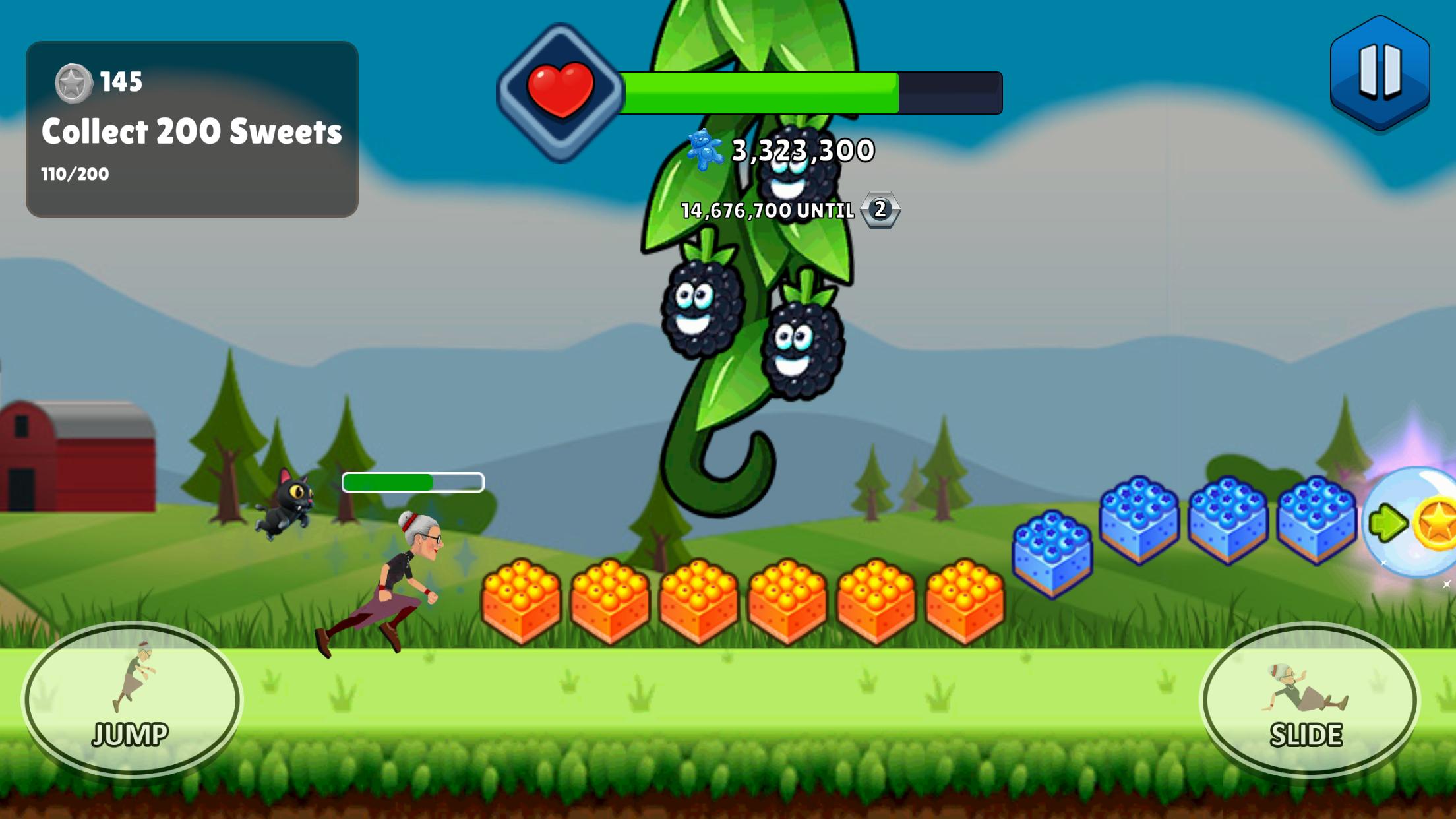 愤怒奶奶糖果冲刺Angry Gran Sugar Rush是一款冒险冲刺跑酷类游戏,愤怒的老奶奶也非常的强大,收集路上的饼干和糖果,与巨大的蜜蜂和怪物们对抗,就像一个超级战士。
